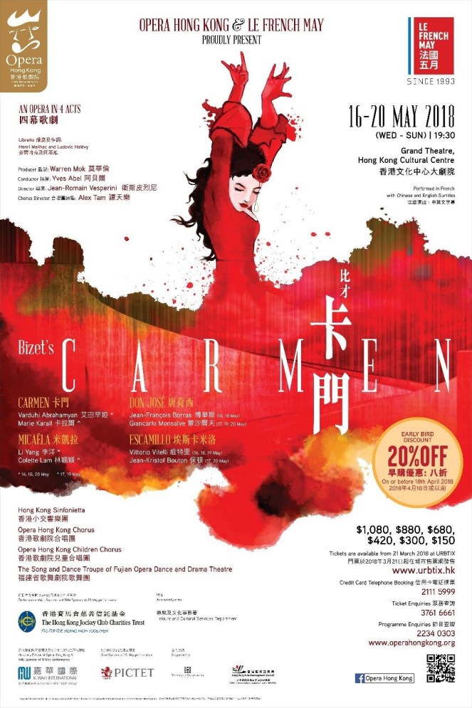 昨天,欣賞了音樂界的勝事 — 比才-卡門。今次係邀請了國際星級演唱家演出,並由香港小交響樂團負責現場演奏,陣容頂盛!!