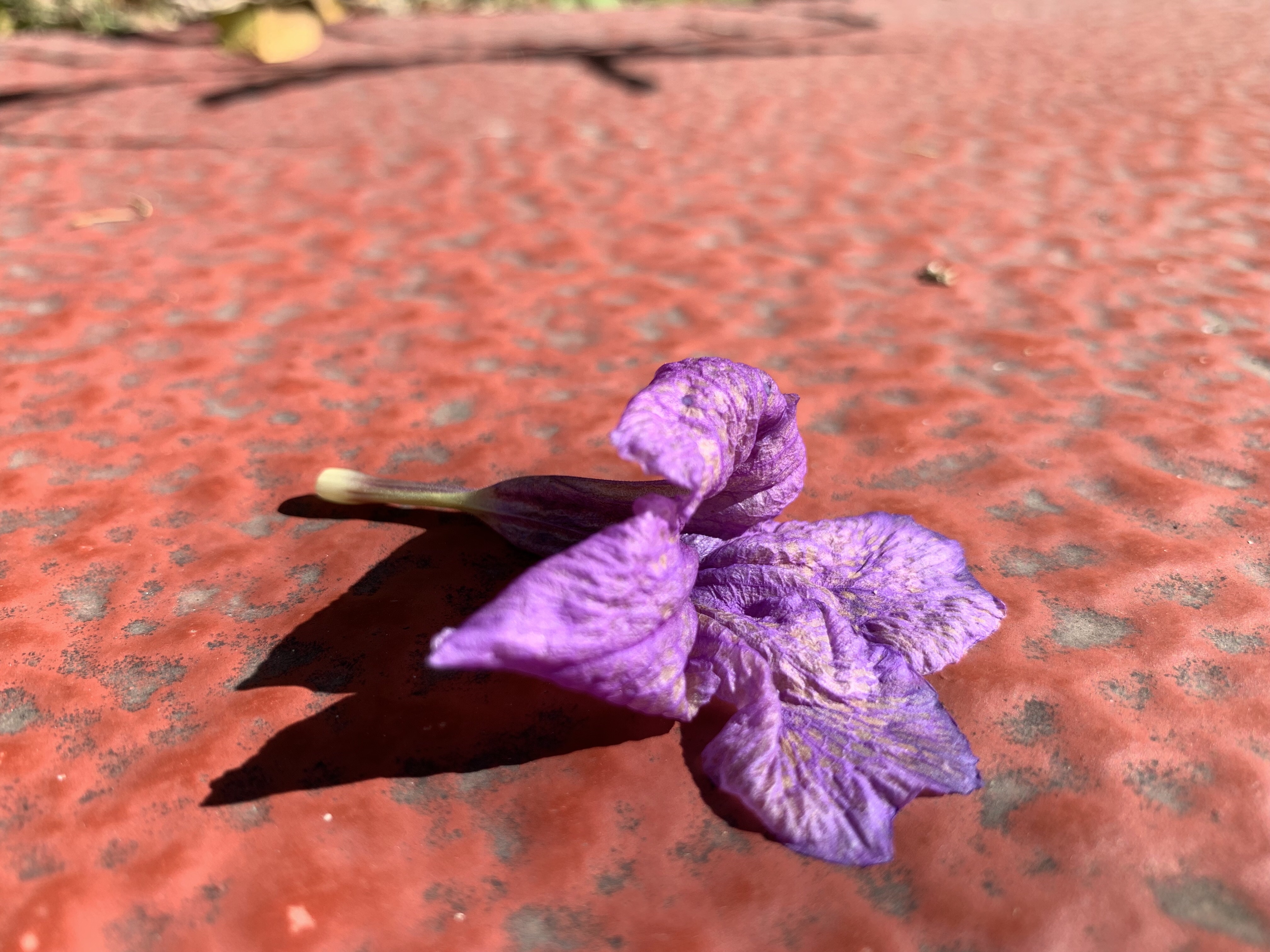 The flower symbolises the seed which is fell by the way side. It’s fall down for some time. I’ve left many space on top to contrast to the trodden of the flower. I’ve used rule of third to concentrate the focus on the flower and balanced out with imagination of the trodden with the enough space. The contrast of the purple of the flower and the red on the road stimulates the imagination.